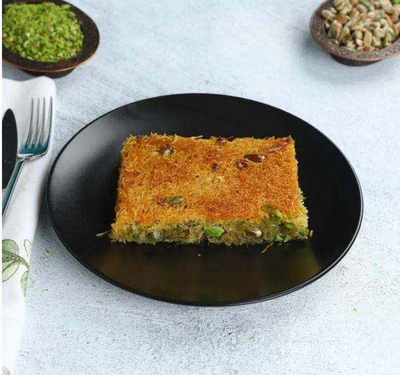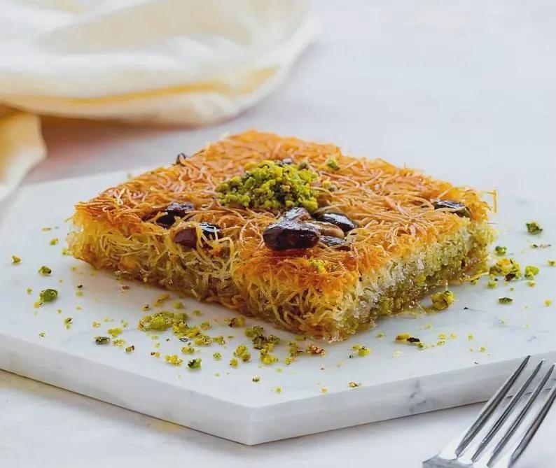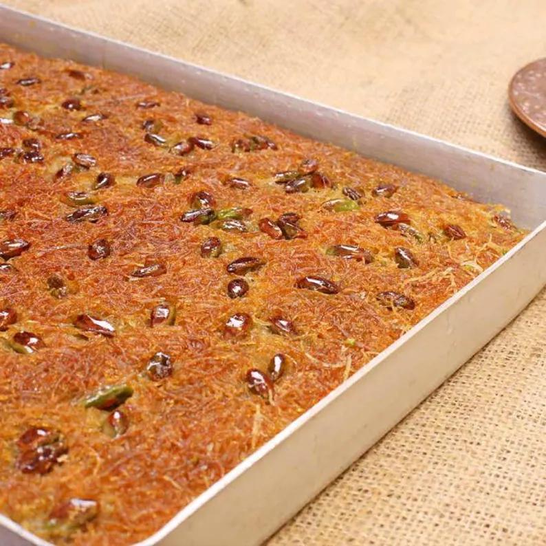 Shredded phyllo pastry rolls filled with nuts and lightly baked for a crispy texture.