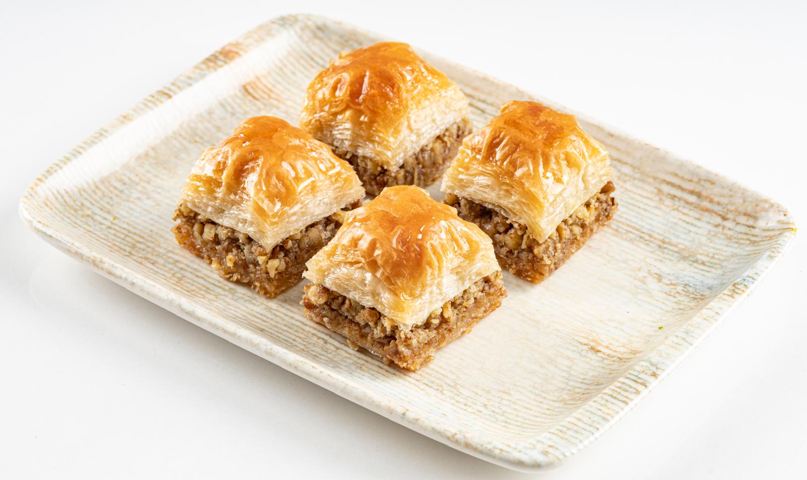 Classic baklava with walnut filling, baked to golden crisp perfection.